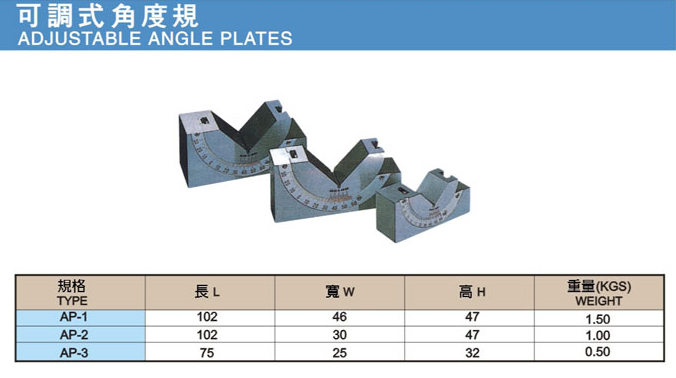 1. 可調(diào)角度規(guī) 銑床角度規(guī) 磨床角度規(guī)由_合金鋼制成,表面淬火至HRC58-64,各工作面間的平行度和垂直度精密磨削至0.005mm。